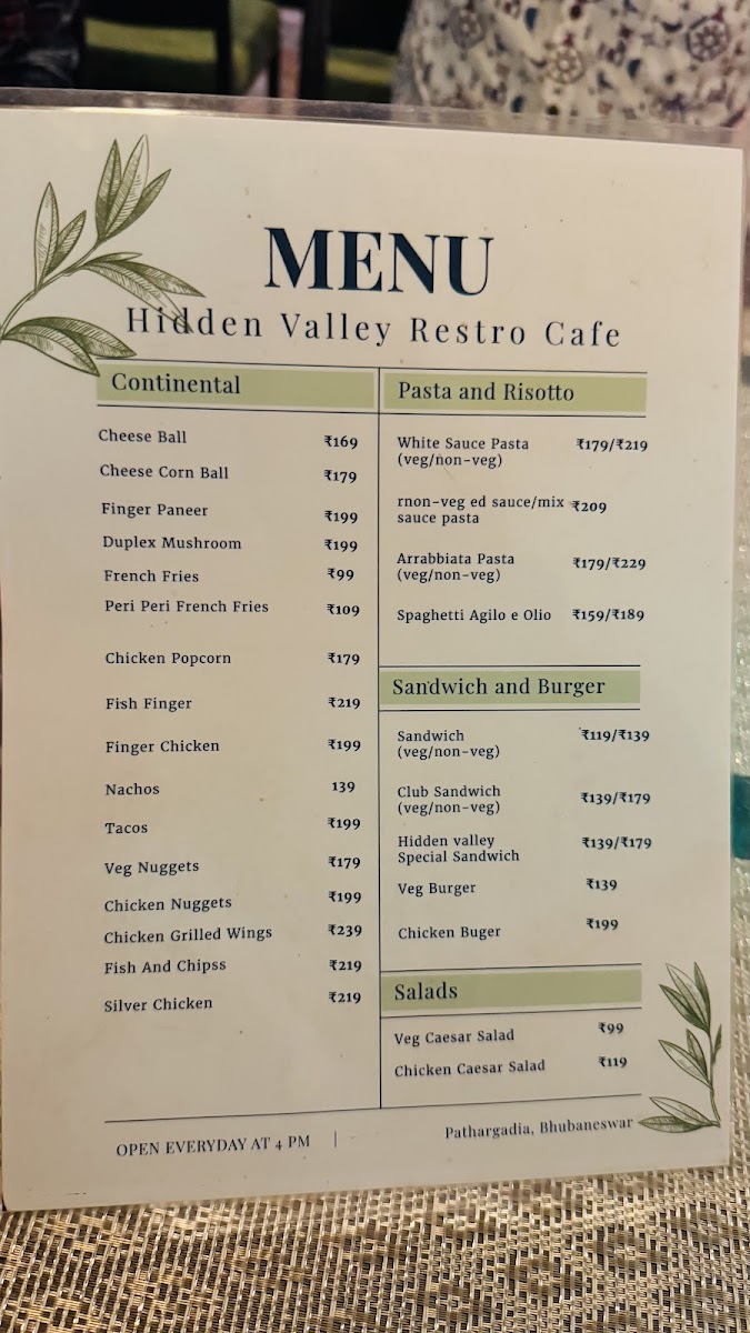 With such high praise and a reputation as a hidden gem, Hidden Valley Restro Cafe beckons you to explore its menu and unique ambiance. Whether you are a local or a traveler passing through Bhubaneswar, this cafe invites you to unwind, indulge, and create cherished memories over a shared meal.
